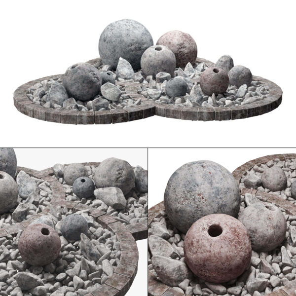 球形石头和碎石组成的花坛 花园景观3D模型(OBJ,FBX,MAX)