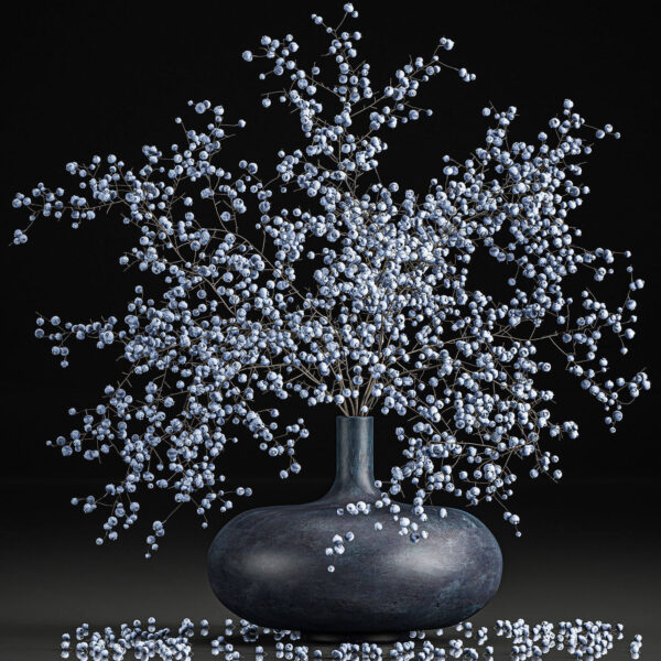 圆形花瓶中的蓝莓枝条3D模型(FBX,MAX)