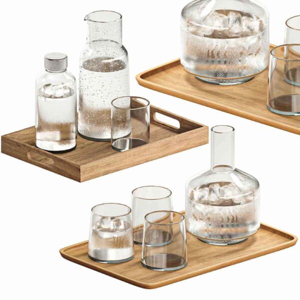 托盘中的玻璃水瓶和水杯3D模型(FBX,MAX)