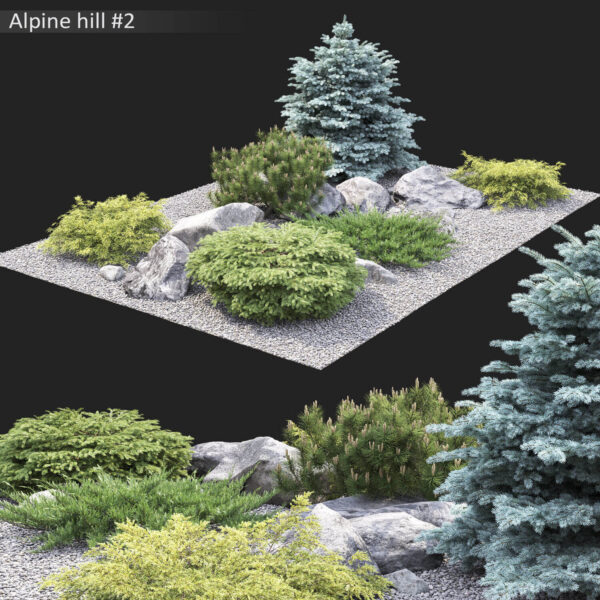 包含崖柏 花丛和石头的组合植物景观3D模型(OBJ,MAX)