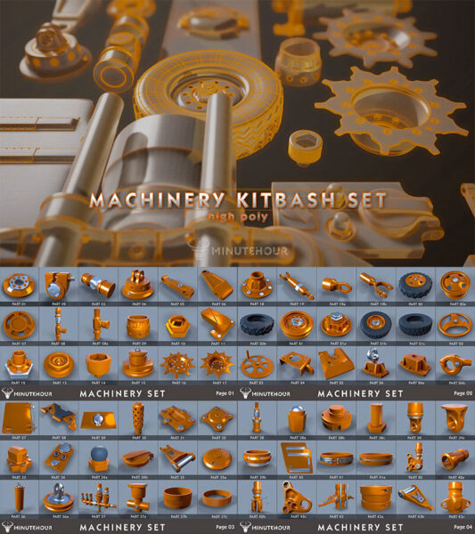 43个低多边形件机械零件3D模型下载(FBX,ZBP)
