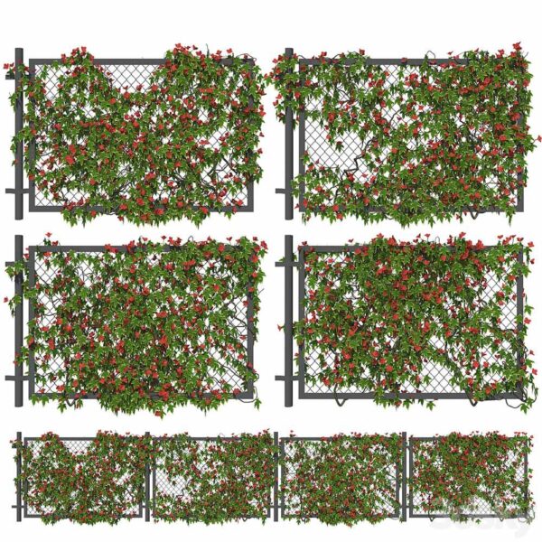 栅栏上开满花朵的藤蔓植物3D模型(OBJ,MAX)