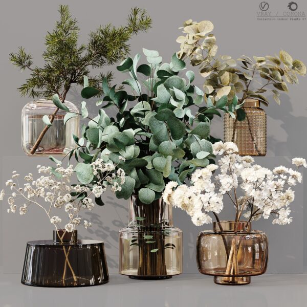 多款装饰花瓶中的花束和树枝组合3D模型(OBJ,MAX)