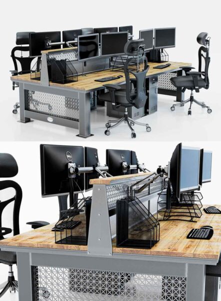 4人座员工办公桌椅 办公室家具3D模型(OBJ,FBX,MAX)