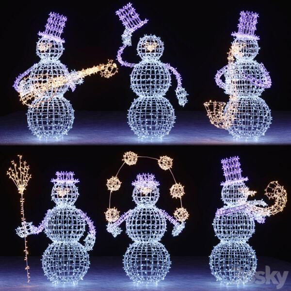 6种造型的雪人灯牌3D模型(FBX,MAX)