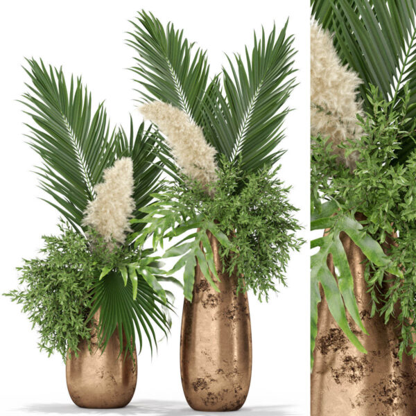 金色装饰花瓶中的绿色枝叶组合3D模型(FBX,MAX)