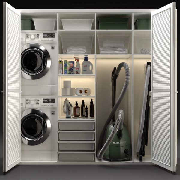 包含洗衣机 干衣机 吸尘器 清洁用品的洗衣房3D模型(OBJ,MAX)