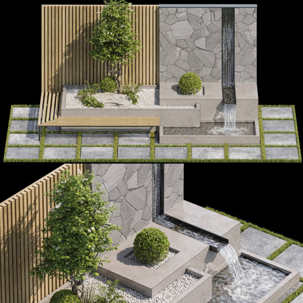 包含喷泉和绿植的花园景观3D模型(OBJ,MAX)