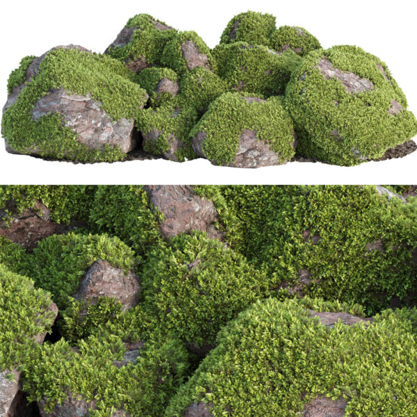 被绿色苔藓覆盖的岩石 花园景观3D模型(FBX,MAX)