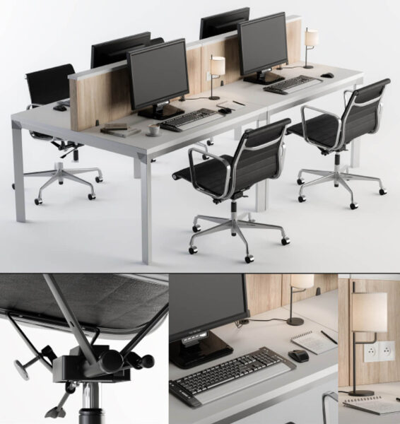 办公室4人座员工桌椅 办公室家具3D模型(OBJ,MAX)