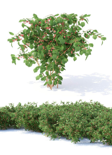 长满红色果实的覆盆子灌木3D模型(OBJ,MAX)