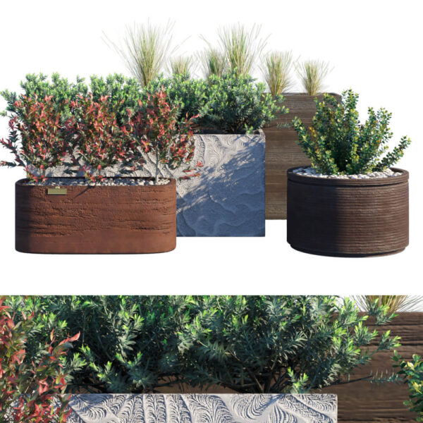 造型别致的花盆盆栽组合3D模型(FBX,MAX)