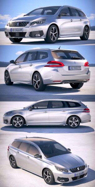 2019款标致Peugeot 308 SW汽车3D模型(OBJ,FBX,MAX)