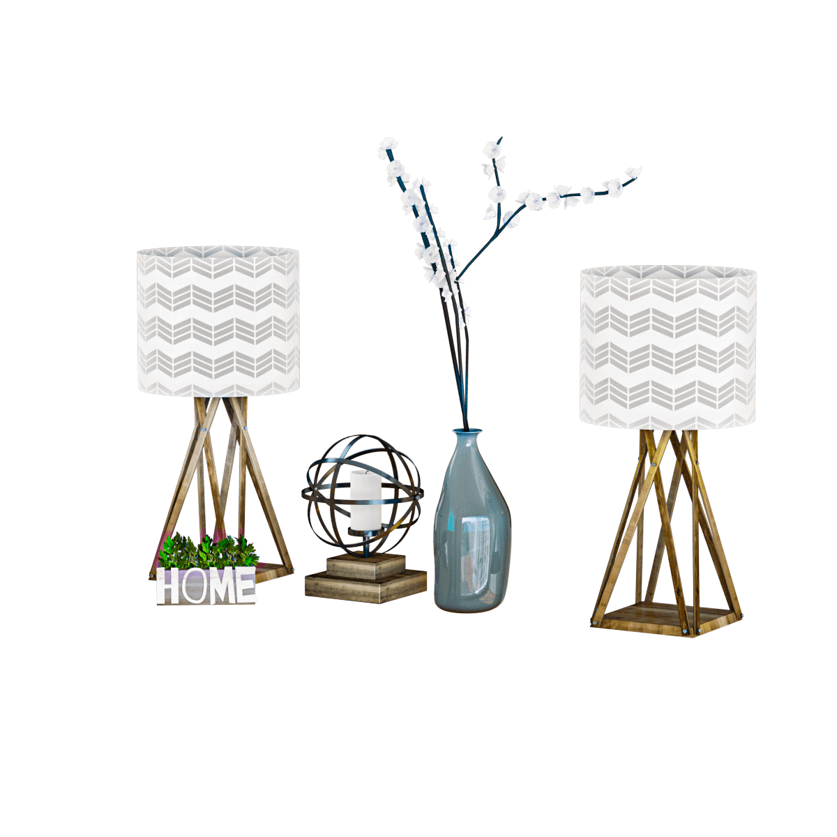 台灯花瓶烛台等装饰组合3D模型(OBJ,FBX,MAX)