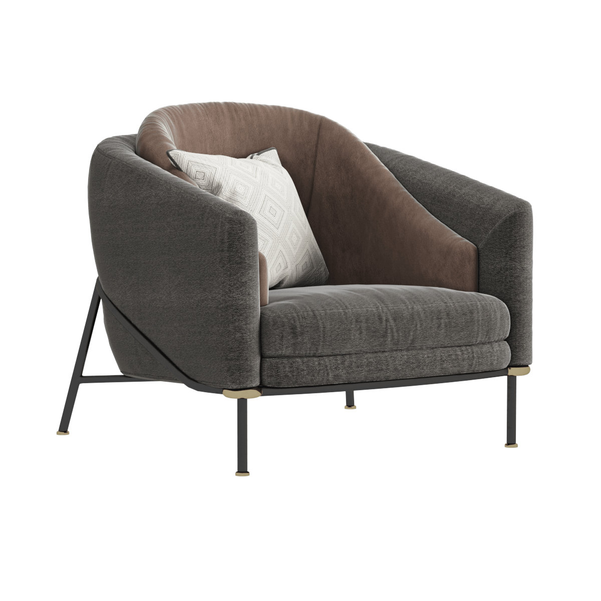 Reeves大号棕色皮革扶手沙发椅3D模型(OBJ,FBX,MAX)