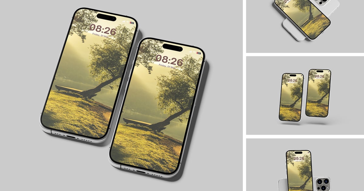 iPhone 15 Pro手机模型集样机 (PSD)