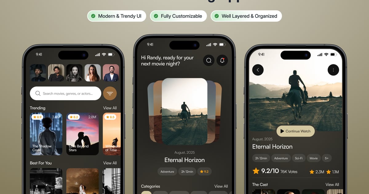 Movari – 电影流媒体应用程序用户界面